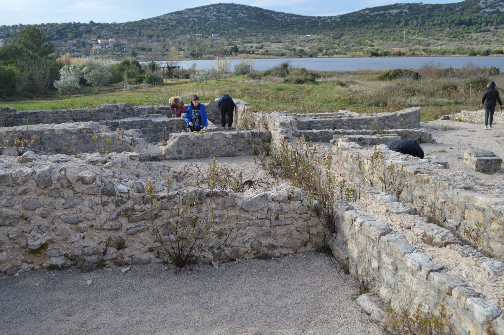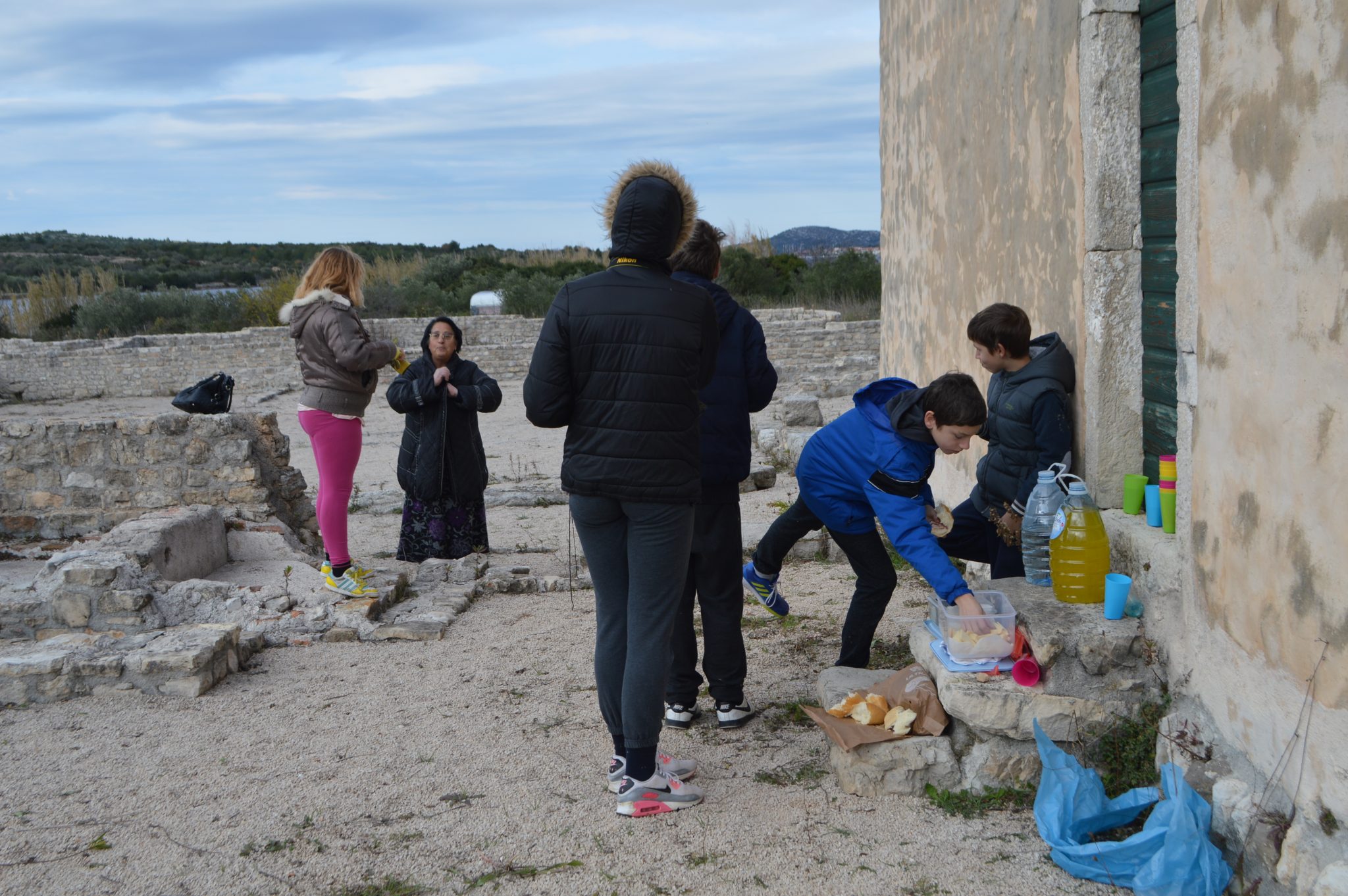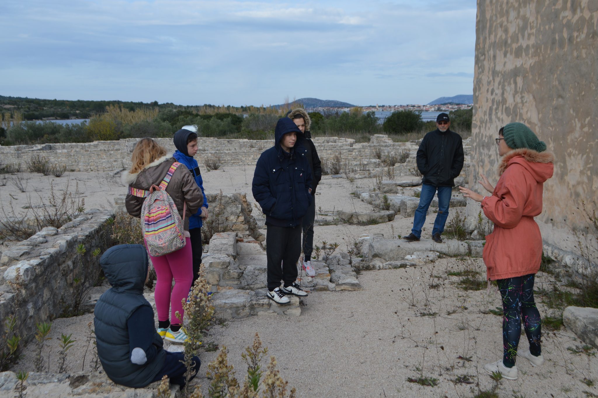 Unatoč već visokom datumu i buri koja je baš u subotu ujutro zapuhala, desetak volontera odazvalo se akciji. Naši najbrojniji volonteri bili su članovi murterske Eko- patrole. Već pri samom dolasku na lokalitet, znali smo da je akcija uspjela- djeca su bila zadivljena zdanjem koje ih je dočekalo. „Ja sam prvi put tu! Koja je ovo crkva? Zašto su ovi zidovi tu? Tko ih je sagradio?“ moglo se čuti iz dječjih usta. Kako bismo djeci pružili informacije iz prve ruke, na našu volontersku akciju pozvali smo arheologinju Magdu Zorić, koja se brine za ovo arheološko nalazište.