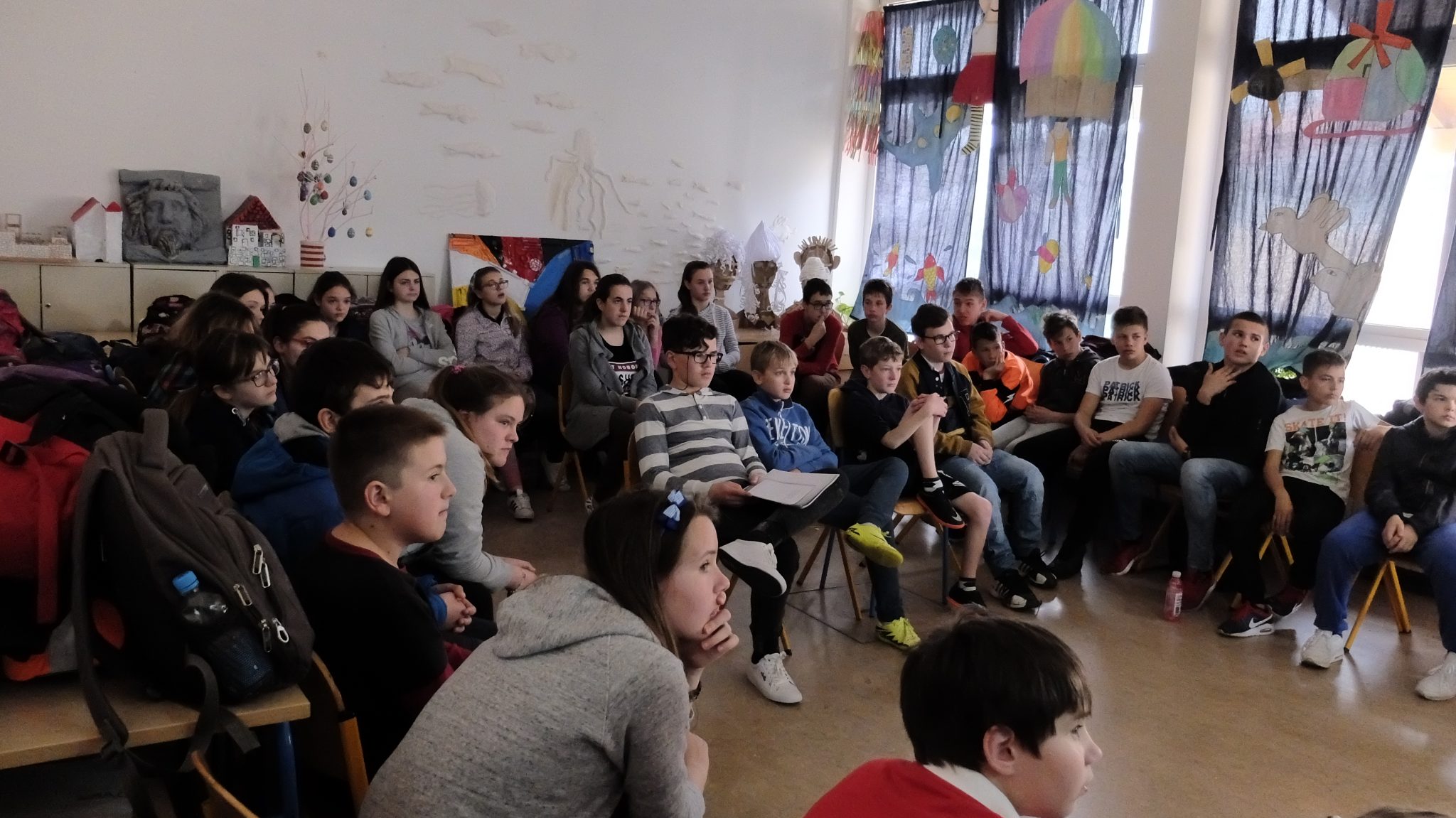 Kako bi približili tišnjanskim osnovnoškolcima Eko-patrolu, predstavljanje smo uobličili kao što radimo na radionicama subotom. Započeli smo s igrama kako bi se upoznali i malo zaboravili na školske brige, a nastavili prezentacijom tema nadolazećih patrola.