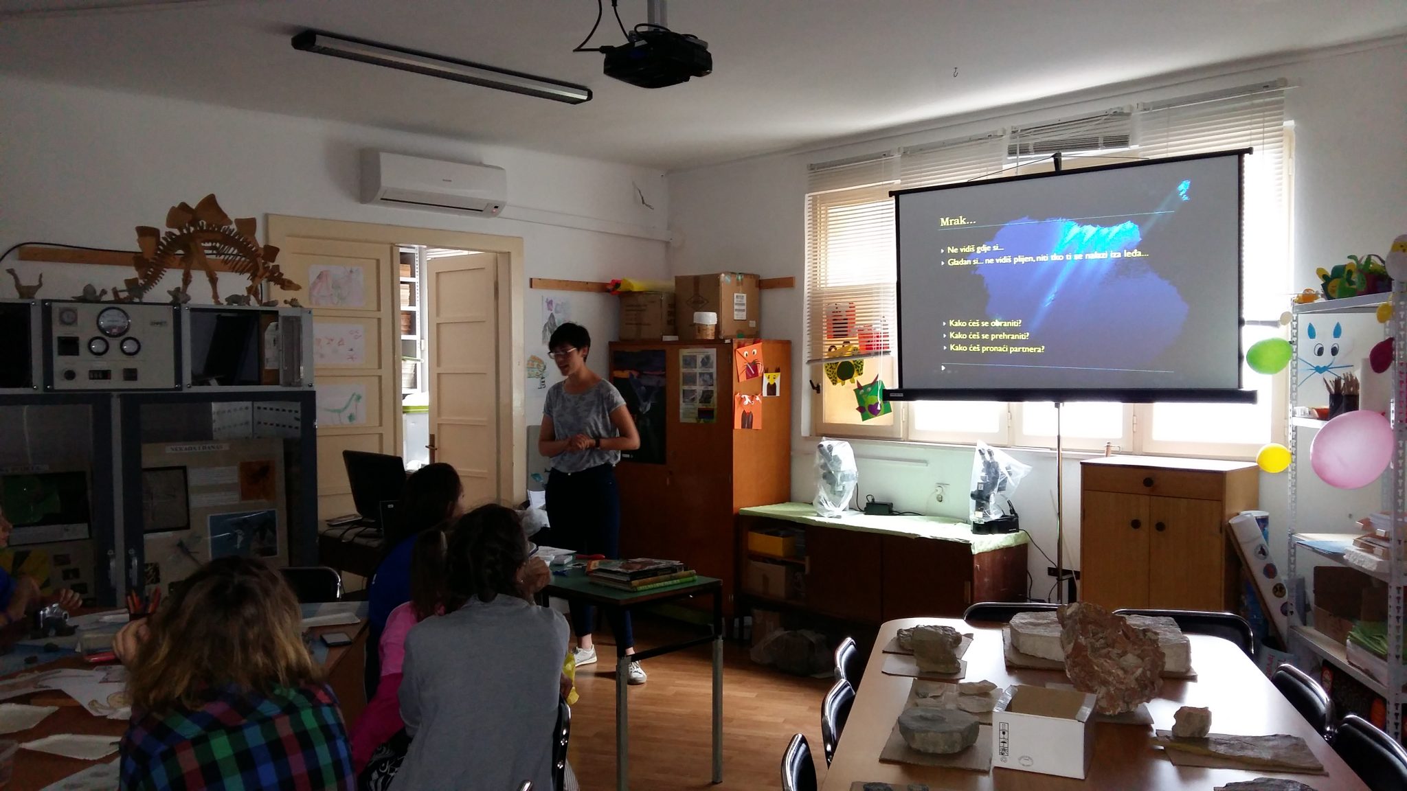 Murterski Eko-patrolaši su subotu 20. svibnja 2017. proveli u obilasku Splita. Prvo smo otišli u obilazak Prirodoslovnog muzeja gdje smo pogledali izložbu šuma s prepariranim životinjama, te izložbu kukaca. Vidjeli smo i veliki kostur dobrog dupina te različite školjke Jadranskog mora. Nismo propustili priliku da još nešto naučimo pa smo nakratko ušli u “zonu sumraka” i saznali koje su to prilagodbe razvila bića iz morskih dubina. Naime, u dubinama većim od 1000 m vladaju uvjeti različiti od onih u kojima plivaju ribe dostupne na našim ribarnicama. Velik pritisak, nedostatak svjetlosti i kisika te niske temperature utjecale su na evoluciju riba i drugih morskih organizama na tim dubinama. Kako vi preživjeli nestašicu hrane, izbjegli predatora te pronašli “životnog partnera” razvili su posebne tjelesne strukture i metode koje im pomažu u opstanku. Tako neki bioluminiscencijom stvaraju svoje svjetlo i privlače partnera, plijen ili pak zbunjuju predatora. Zbog velikog pritiska neke ribe nemaju čvrste strukture, a jedna među njima je dobila i titulu “miss najružnijih riba” radi svoje nekompaktne, želatinozne strukture. Neke ribe mogu progutati plijen tri puta veći od njih samih i tako si osiguraju hranu danima. U tom mraku, gdje prođu dani da ne naiđu na drugo živo biće, teško je pronaći partnera. Upravo zbog toga neke ribe zakače na sebe patuljastog mužjaka, nose ga cijeli život i time si osiguraju reprodukciju.
