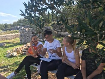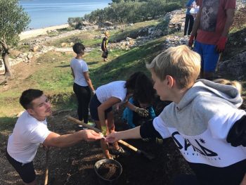 Nakon igara, bacili smo se na kopanje, a patrolaši su našli način kako da dan učine lakšim i zanimljivim. Zavukli su se među masline i suhozide te ispitali naše volontere kako se novčić, lonac, carstvo, nebo, mir i druge riječi kažu na njihovom jeziku. Služili su se engleskim, rukama, nogama te naučili jedni druge ponešto od svakog jezika, a najviše su se “lomili” s turskim riječima. Uz novo znanje i prijatelje, patrolaši su bili motiviraniji za čišćenje otpada oko Colentuma, a pomogli su volonterima i u njihovom radu.