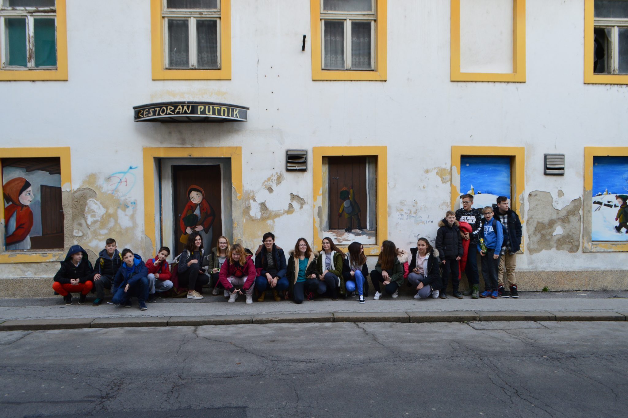 I zaista, zabava i druženje je počelo odmah ujutro kada su patrolaši zauzeli svoja mjesta u mini busu, kada su izvadili sve grickalice, slatkiše i sokiće te počeli birati pjesme koje će stvoriti najbolju atmosferu za trosatnu vožnju. Kako bi vožnju učinili zabavnijom, naš novi volonter Velin pripremio je igru asocijacije u kojoj su djeca kroz igru naučila nove bugarske riječi, a pritom se i dobro zabavila. Pri samom ulasku u Karlovac, mogla se osjetiti idila koju pružaju rijeke i predivne zelene površine, a Akvarij slatkovodnih riba smo gotovo promašili jer je savršeno uklopljen u krajolik za čiju je arhitekturu dobio i mnoge nagrade. U Slatkovodnom akvariju smo imali što i vidjeti, postav prikazuje tok krške rijeke – riječnu floru, faunu i njezinu bioraznolikost, a stvoren je dojam kao da se šetate kroz tok rijeke uz zvukove i ribe sa svih strana. Djeci je najveća atrakcija bila veliki som, za kojeg se ispostavilo da samo odmara tijekom dana te da mu nije potrebno pružiti prvu pomoć, ali hvala im na obzirnosti! 😉 Velike migracijske ribe koje su plivale u akvariju iznad nas su nas ostavile bez teksta jer nismo bili svjesni koliku raznolikost pružaju riječna staništa. Sa Slatkovodnim akvarijem smo se pozdravili uz pokoji kupljeni suvenir te smo nastavili svoj izlet uz obalu Korane, gdje smo se poigrali pojeli, ali i naučili neku zanimljivost o ovom predivnom gradu. Legende o nastanku Karlovca, utvrda u obliku zvijezde i razne druge povijesne zanimljivosti su zaintrigirani naše patrolaše te su jedva dočekali prošetati samim centrom. Očito je to bila ljubav na prvi pogled jer su Karlovac su opisali kao čarobni, bajkoviti grad u koji bi se neki od njih rado vratili na studij. Tko zna, možda netko od naših patrolaša jednom bude patrolirao i ulicama Karlovca.