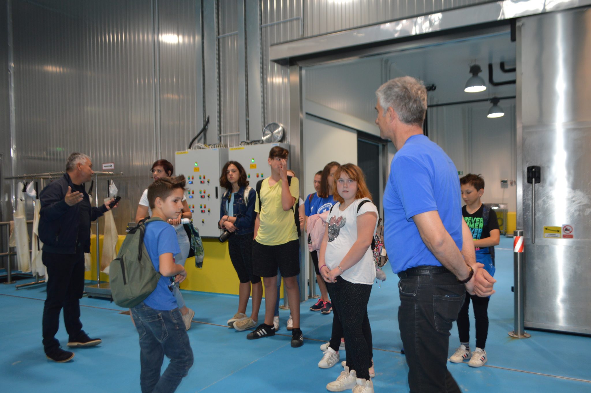Tako je i bilo. Startali smo u 9 iz Murtera te kombijima došli do zadarske luke Gaženica gdje se smjestila Pelagos net farma. Domaćini su nas srdačno dočekali sa željom da nam pokažu i pojasne čim se bave. Prvo smo vidjeli hladnjače gdje se čuva mala plava riba kojom se tune hrane. Malo je djeci bilo hladno, ali to ih nije spriječilo da istraže drugo postrojenje u kojem se mala plava riba obrađuje, marinira ili soli te skladišti radi zrenja. Riba koju vrijedne ruke radnika obrade, čuva se u sanducima gdje zrije u salamuri, a potom putuje prema Albaniji i Italije, gdje konačno postaje krajnji produkt. Djeca su se prvi put susrela s takvim postrojenjem te im je bilo jako zanimljivo, mada nisu bili najsretniji s mirisom na koji se, ipak, treba malo priviknuti.