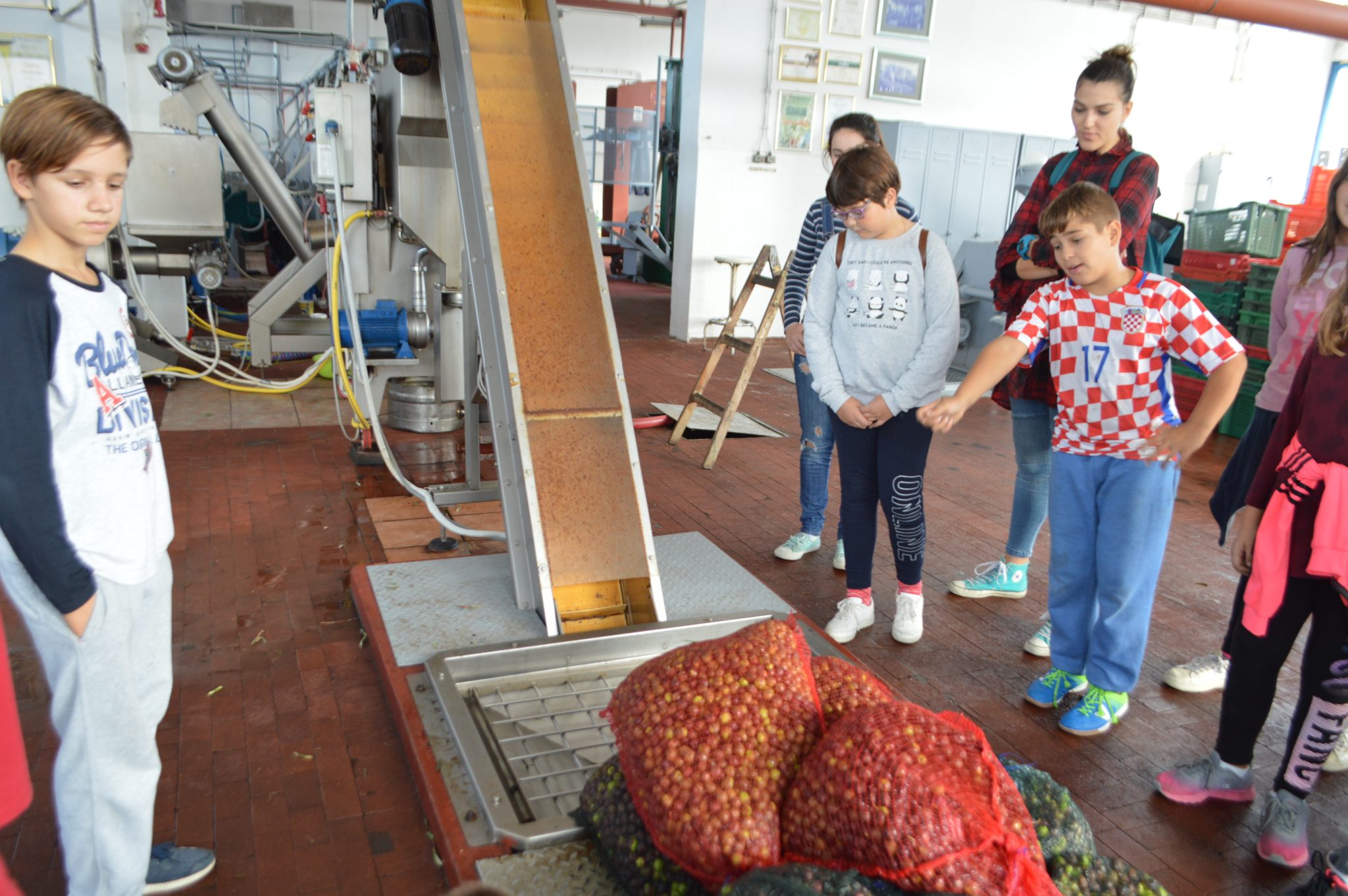 Napokon kao šlag na kraju, krenuli smo u ULJARU. Na putu do uljare opet smo se igrali i uz pomoć naših volonterki učili francuske i talijanske riječi. Mjerili promjer debla maslina na koje smo naišli i uz pomoć njega procjenjivali njihovu starost. Najstarija po nama maslina je imala čak 700 godina.