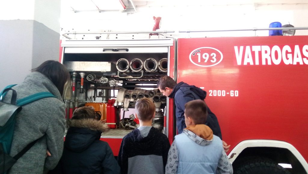 Ova subota za razliku od prošlih je bila dosta drugačija. Malo smo se odmakli od prostorija udruge Argonauta, i to ni manje ni više, nego u posjet DVD-u Tisno. Vatrogasci, odnosno zaposlenici DVD-a su nas srdačno dočekali. Njih troje dežurnih vatrogasaca odgovaralo je na pitanja zainteresiranih patrolaša. Objasnili su nam svoje brojne dužnosti i obaveze koje izvršavaju, a to nije samo i isključivo gašenje požara. Prvo su nam pokazali vatrogasna vozila, potom vatrogasno odijelo za šumske požare, zaštitne čizme i patrolašima najzanimljivije kacige, koje su naravno morali isprobati i bar nakratko postali vatrogasci.