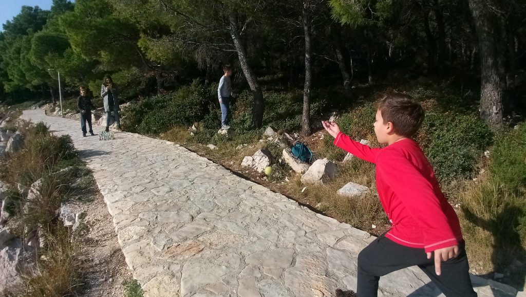 Nakon toga smo igrali igre u kojoj smo pokušali ‘spasiti šume od požara’. Također smo se preko igre, upoznali s lako zapaljivom vrstom stabla, ALEPSKIM BOROM, čija zapaljena šiška leti i do nekoliko desetaka metara i tako širi požar na okolna područja.
