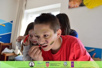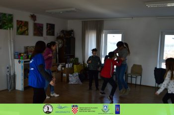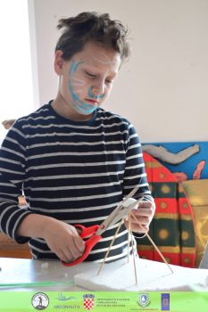 Nakon igara, radionicu smo nastavili u znanstvenom tonu. Pokazali smo im primjere izuma inspiriranim prirodom, koji su ih potaknuli za kreiranje vlastitih izuma (šator za pse, vodna turbina od plastičnih žlica, sito od papira itd.).