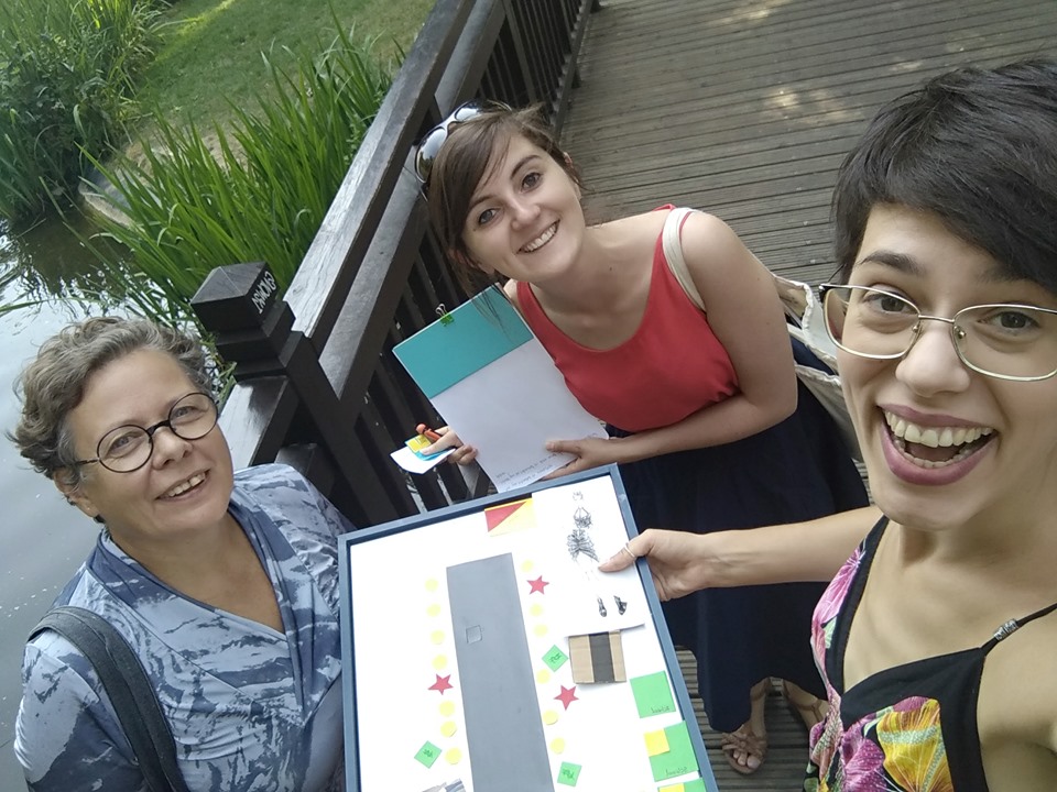 Raznim neformalnim metodama, upoznali smo se s dizajniranjem promišljanja kroz kombinaciju onog divergentnog i konvergentnog. Da bi shvatili problem i ušli u njegovu samu srž, koristili smo se metodom intervjua i na ulicama Luksemburga potražili odgovore na naša pitanja. Sudionici su bili podijeljeni u 5 grupa te su se bavili temama – moda, pametni gradovi, alternativni načini prijevoza, hrana te mladi i politika. Nakon što smo „ispitali teren“ i stavili sva pitanja na stol, izabrali smo ono jedno na koje želimo pronaći odgovor i ponuditi pametno rješenje. Za to nam je pomogla i „persona“ koja je predstavljala našu ciljanu skupinu i na kojoj smo mogli testirati prototip rješenja.
