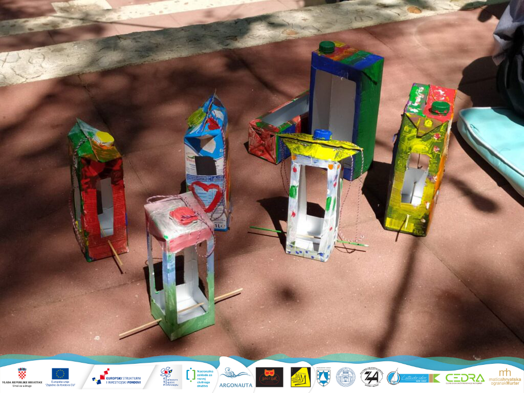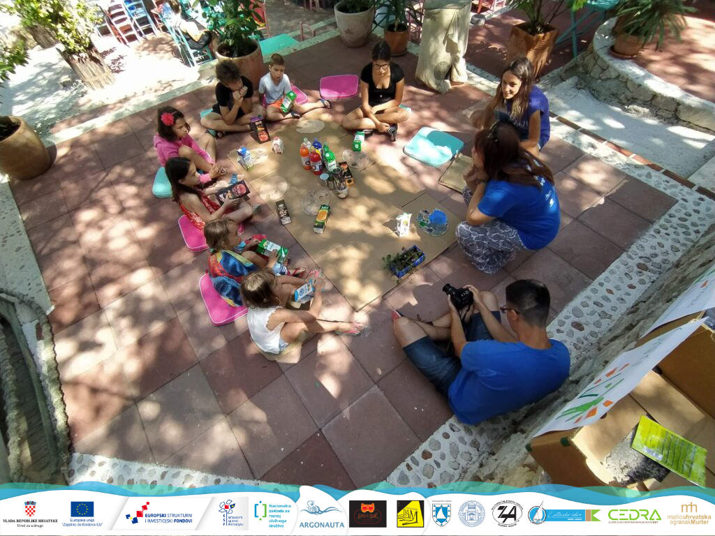 Danas smo održali prvu od radionica na kojoj smo od korištenih i opranih tetrapak pakiranja izradili nove predmete: hranilice za ptice i posude za biljke. Pri tome smo naučili koji otpad možemo reciklirati, a koji prije recikliranja možemo ponovno iskoristiti! Svi polaznici su aktivno sudjelovali u kreativnom “brainstormingu” te došli do sjajnih ideja za ponovnu upotrebu raznih otpadnih predmeta.