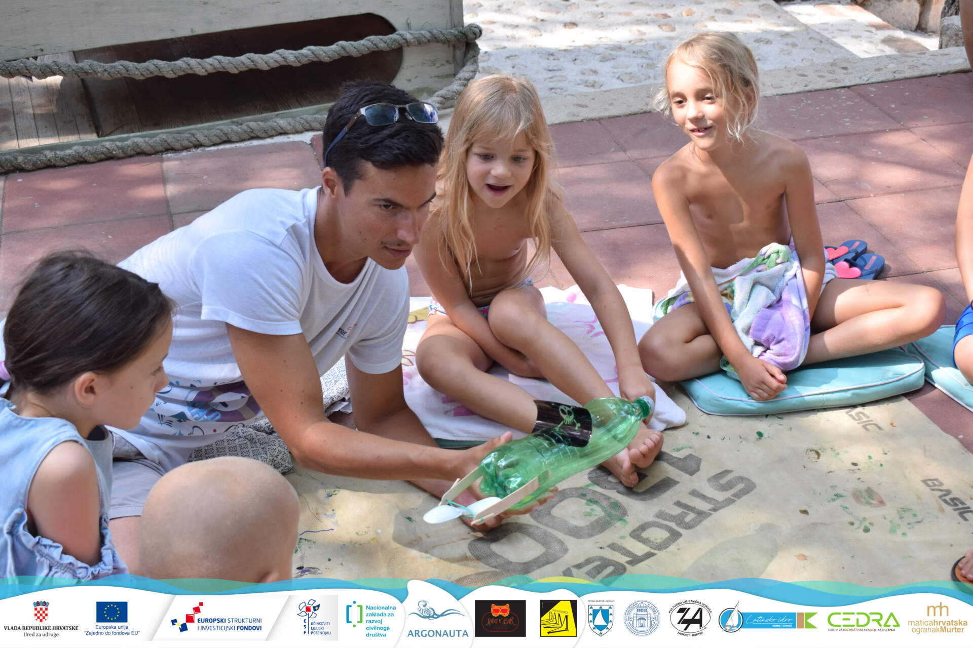 Uzeli smo plastične boce i pretvorili ih u DIY gusarske čamce, s pogonom na ručno punjenje. Nakon borbe između štapića i žlica, krenuli smo na more kako bismo ih testirali! Bilo je jako zabavno vidjeti djecu kako se prskaju i pomažu jedni drugima u punjenju pogona. Odličan timski rad!
