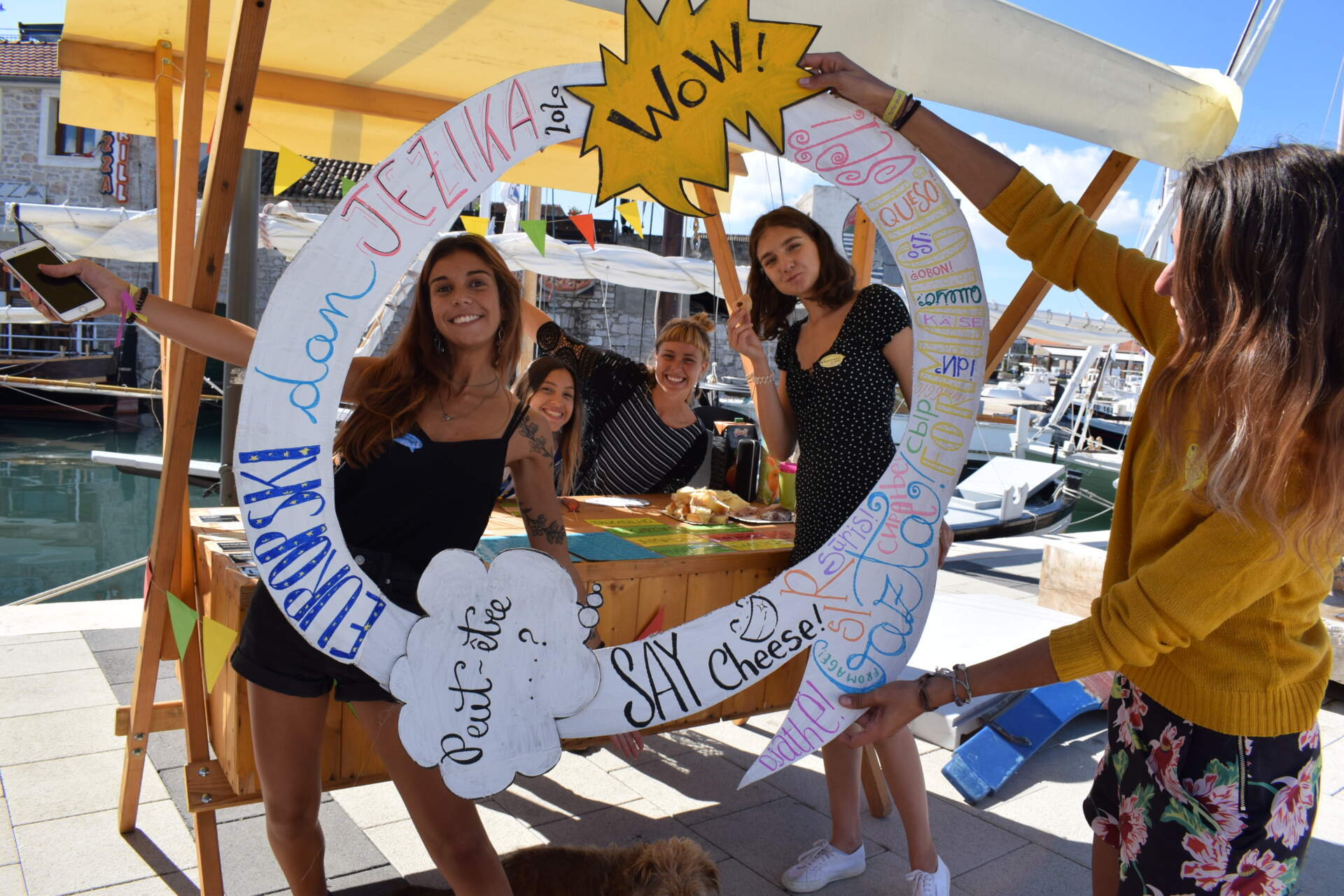 Ovaj su tjedan volonteri, uz fizičke aktivnosti na Murteru, pripremili i održali manifestaciju Europski dan jezika na Staroj rivi. U srijedu prijepodne riva je bila uronjena u lavinu boja, zastava, okusa i glazbe iz svih zemalja iz kojih su naši volonteri došli (Portugala, Poljske, Turske, Francuske, Hrvatske, Španjolske i Italije).