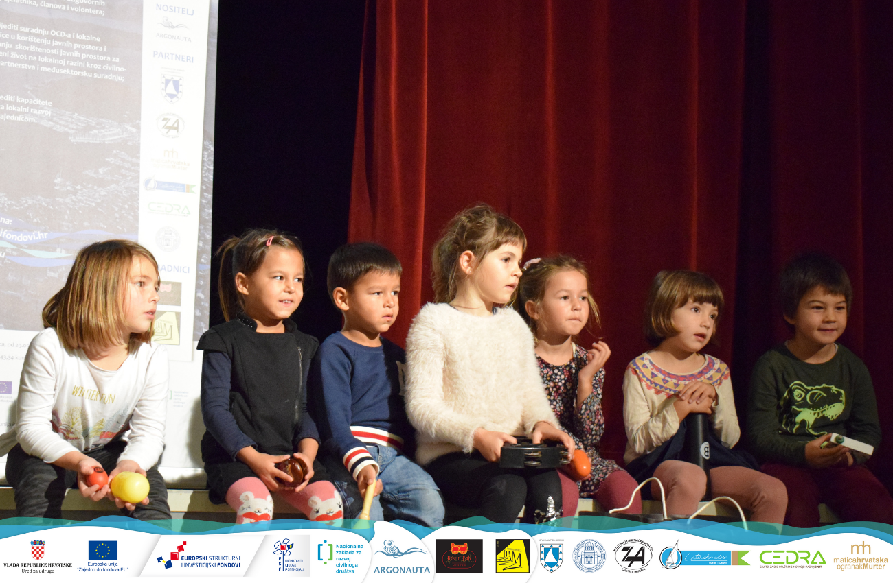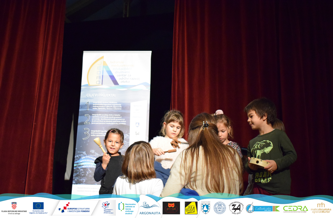 Nakon zanimljivih dječjih odgovora, djeca su se upoznala s pomalo neobičnim i novim instrumentima. Nakon što su ih dodirnula, isprobala i zadovoljila znatiželju, djeca su naučila kako ih koristiti i međusobno ih kombinirati na način da su zajedno s voditeljicom radionice proizvodili instrumentalnu pjesmu kiše i oluje. Svako je dijete imalo svoju malu ulogu u ovoj izvedbi i tako je nastao pravi mali orkestar.