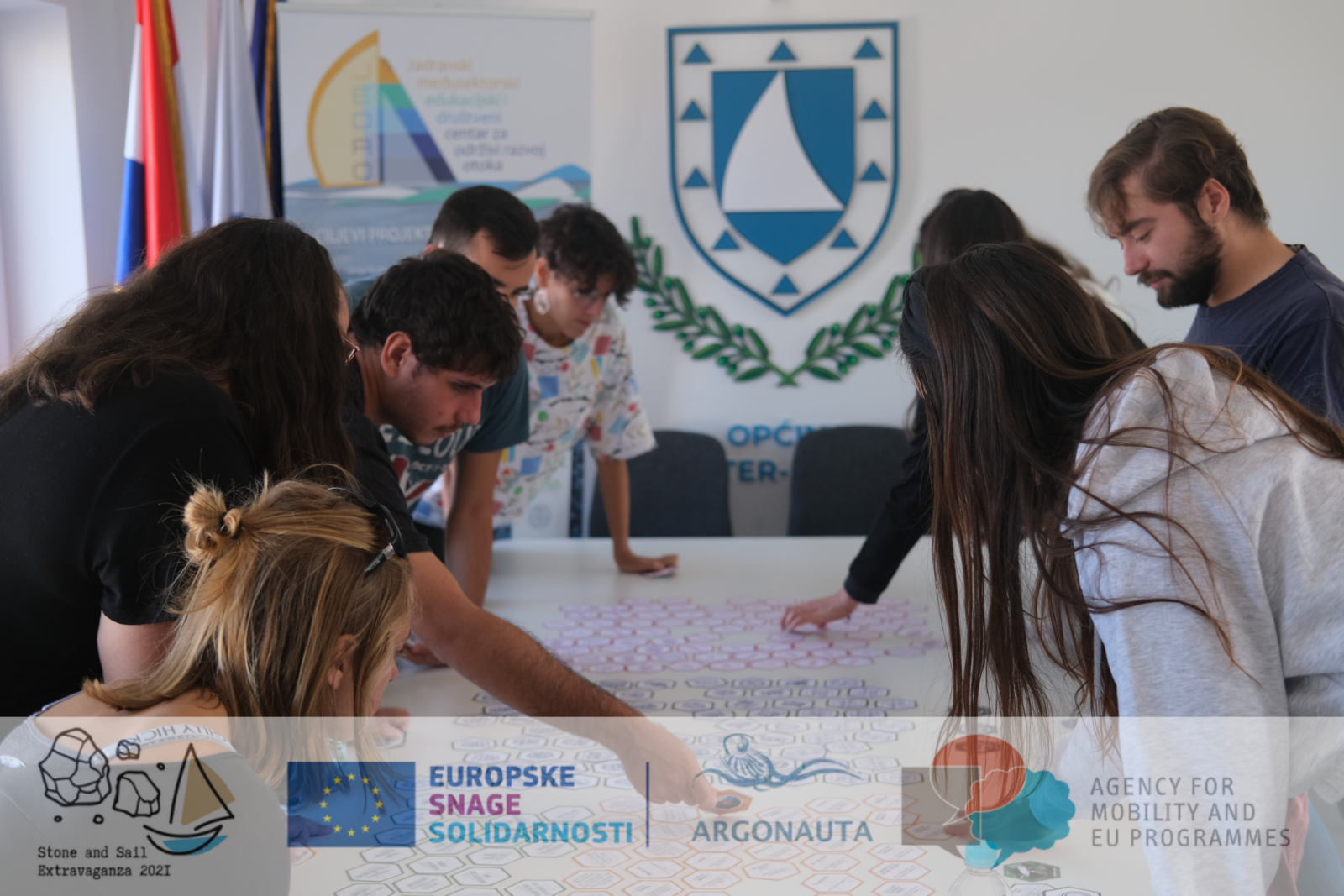 Od prošlog tjedna Murter je na mjesec dana postao domom 10 mladih volontera iz Poljske, Francuske, Španjolske i Bugarske. Cilj njihovog dolaska je Stone & Sail Extravaganza projekt koji se provodi kroz program Europskih snaga solidarnosti uz financijsku potporu Europske unije i u organizaciji naše Udruge za zaštitu prirode i okoliša te promicanje održivog razvoja Argonauta.
