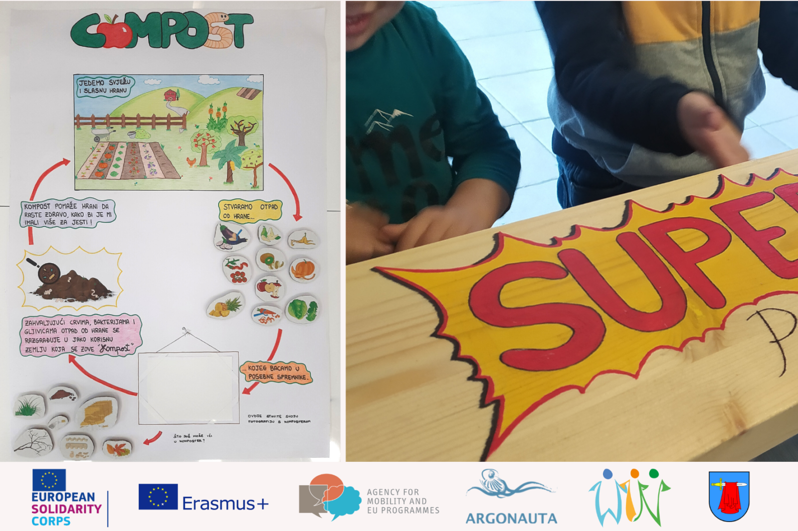 Ideja za komposterom, našoj volonterki se javila ubrzo nakon dolaska u Hrvatsku i to iz jednostavnog razloga – nije znala gdje s biootpadom! Iako komunalna poduzeća i u Hrvatskoj nude kompostere, ljudi jednostavno nemaju naviku kompostiranja za razliku od Talijana. Spremna da to promijeni, Costanza je za svoj osobni project osmislila i napravila SUPER KOMPOSTER – zanimljiv, atraktivan i jednostavan za korištenje! Cilj projekta i samog kompostera je da djeci od malih nogu predstavi kompostiranje kao zanimljivu i korisnu aktivnost kojom pomažu planetu Zemlji, životinjama koje se hrane kompostom te ljudima koji će jesti zdravu hranu, uzgojenu u plodnoj zemlji dobivenoj iz komposta!