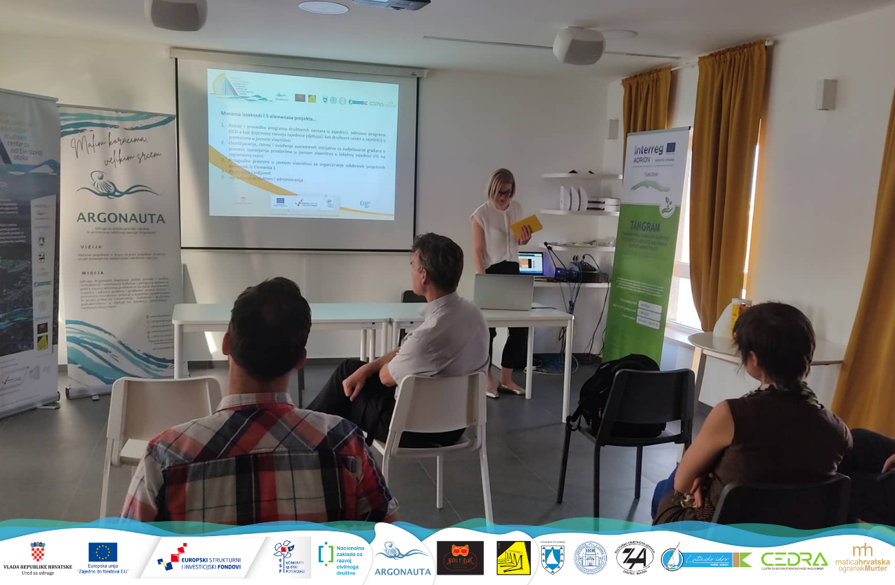 Uz to, održano je i 12 predavanja, sastanaka i radionica osmišljavanja mogućnosti suradnje na boljem korištenju prostora u javnom vlasništvu na području Općine Murter-Kornati za prostore Colentum, Amphorarium, Kino sala Žut, DC Jedro, Sokolana i Raduč.