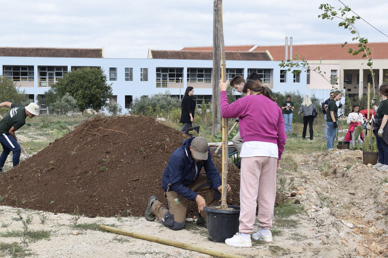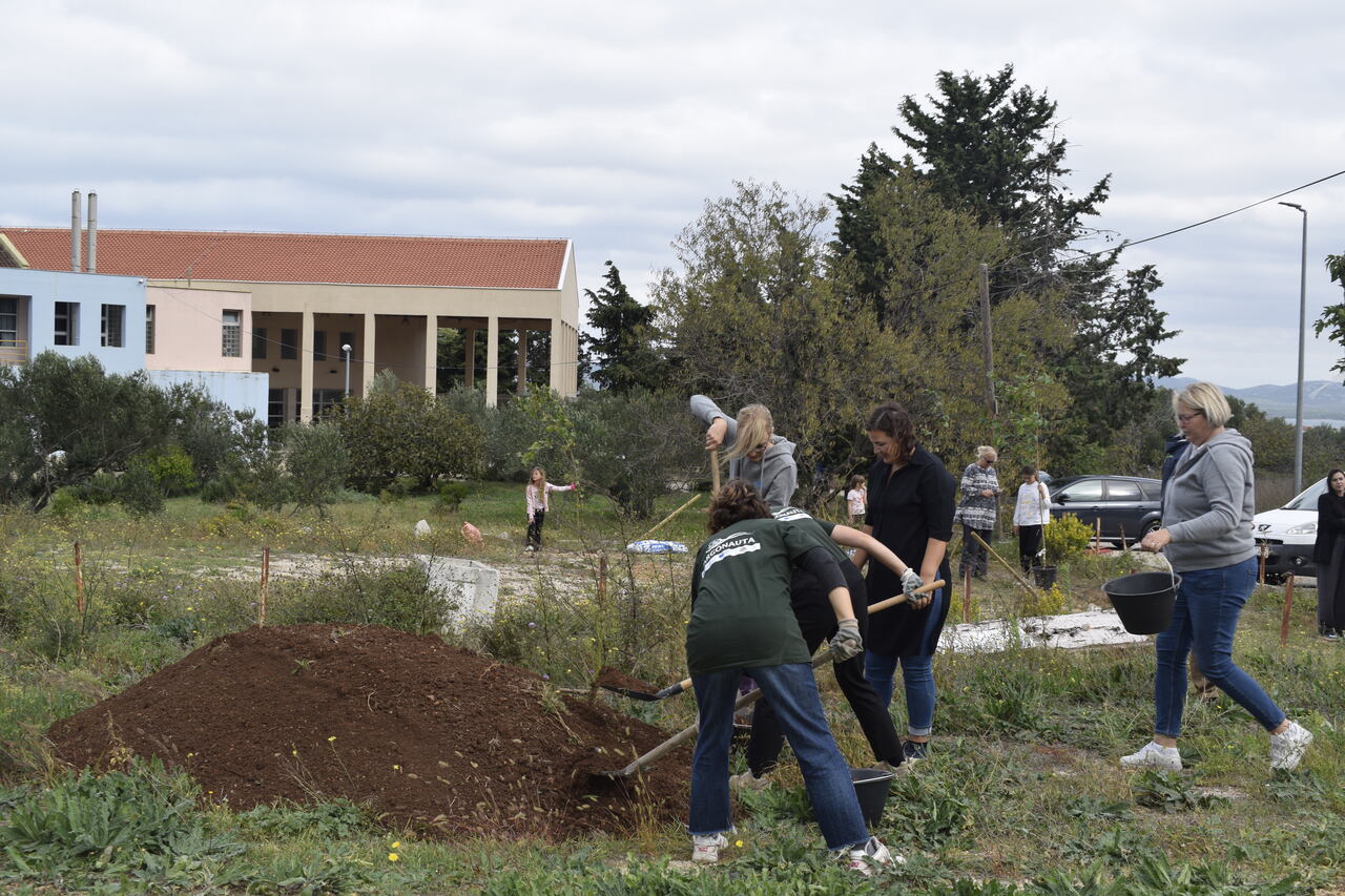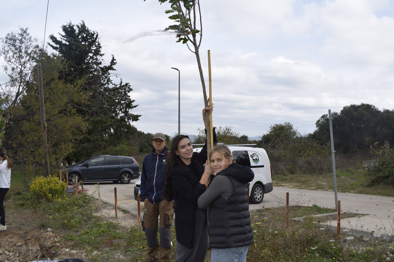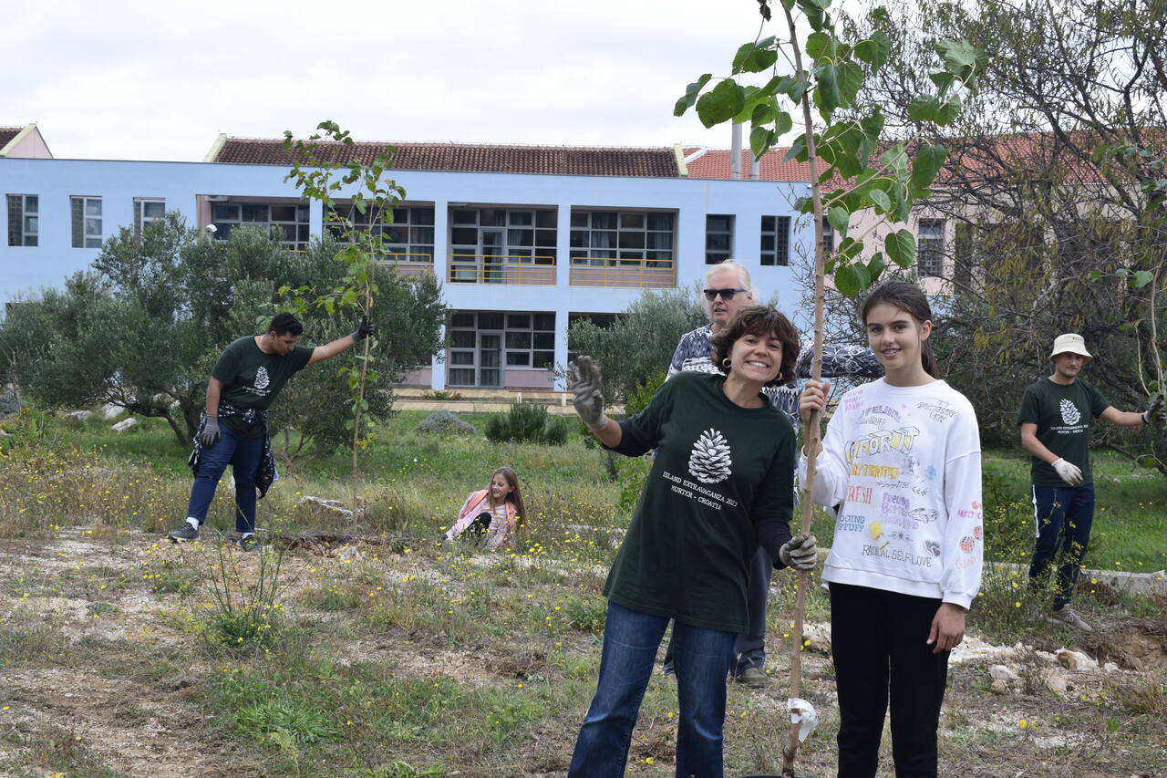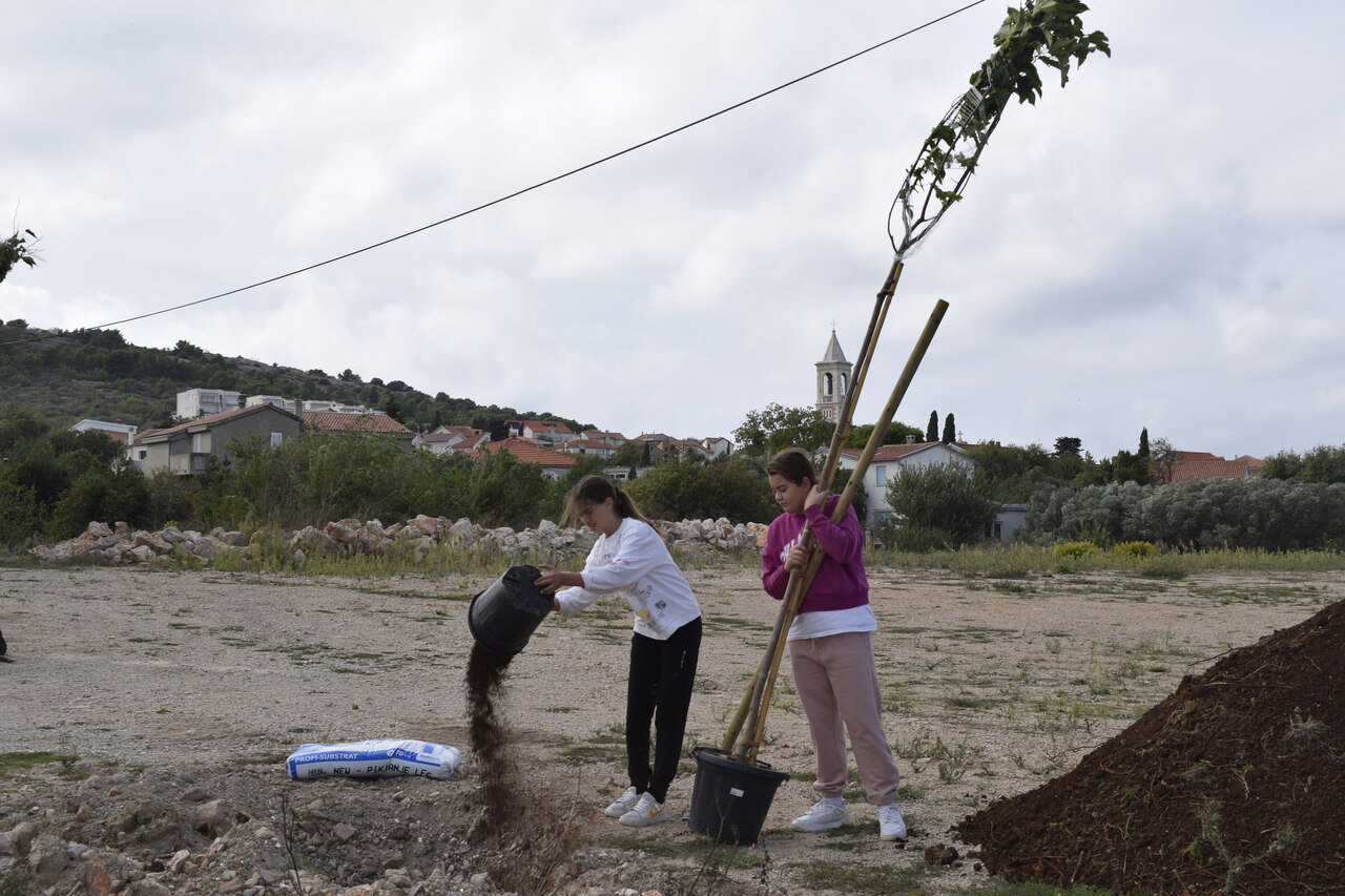 Nakon dva tjedna edukativnih radionica, prošli četvrtak, 19.10.2023. došla je na red akcija ozelenjivanja OŠ Murterski škoji u sklopu projekta “Dica sade više – za stupanj niže”.