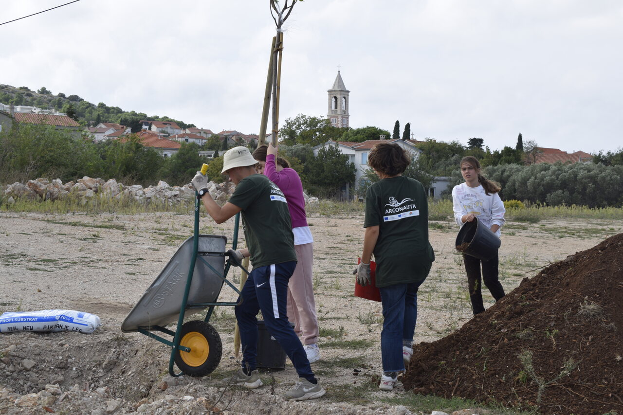 Učenici su prvo naučili zašto je potrebno održavati i razvijati zelene površine, a onda je došlo na red da se i sami okušaju u sadnji. Uz pomoć naših volontera i Argonautinog tima, predstavnici razreda posadili su 12 murvi na javnoj površini OŠ Murterski škoji i tako pomogli svima koji koriste te prostore, da mogu uživati u hladovini bujnih krošnja u vrućim danima.