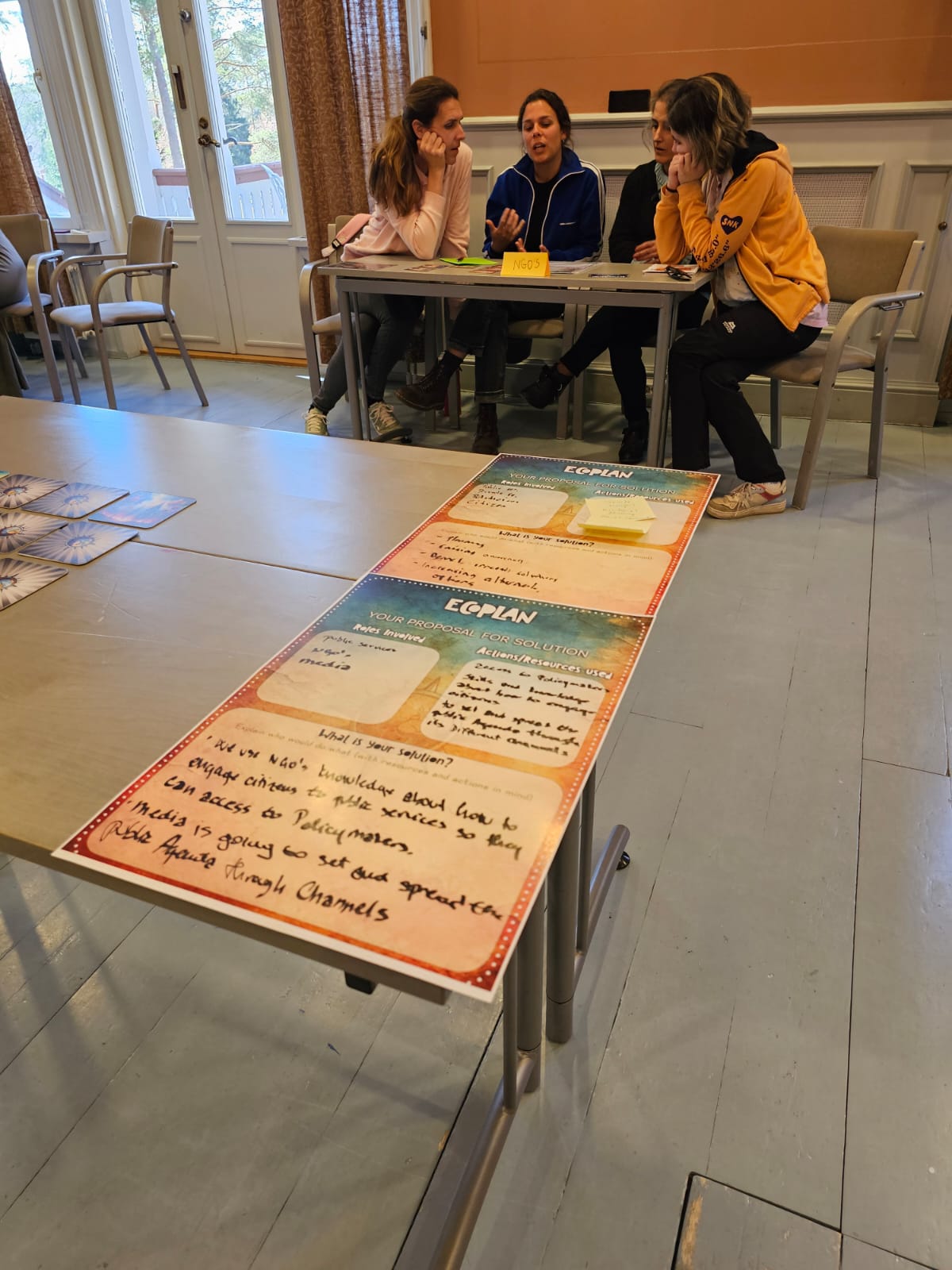 Oba puta sudjelovalo je između 20 i 30 sudionika, podijeljenih u podskupine koje su predstavljale različite aktere u društvu poput građana, političara, medija, javnih službi, privatnog sektora i nevladinih udruga. Ja sam prvi put bila u ulozi građana, a drugi u ulozi nevladinih organizacija. Svaka grupa je na početku dobila opis svoje uloge u društvu kao i popis svojih odgovornosti i resursa, što je olakšalo utjelovljenje dodijeljene nam uloge. Suočili smo se s rješavanjem raznih konkretnih problema kao što su onečišćenje oceana mikroplastikom, nedostatak zelenih površina u urbanim područjima ili štetni utjecaji industrije brze mode.