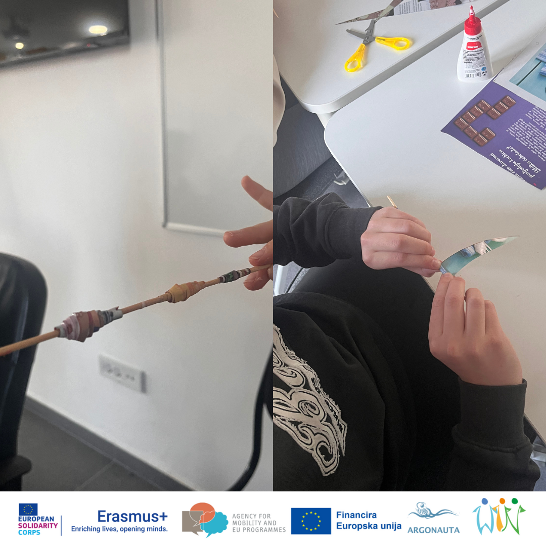 Još jedna radionica programa „Zima puna života“ je iza nas. Ovog utorka, 18. veljače, od starih časopisa i novina izradili smo jedinstveni nakit!