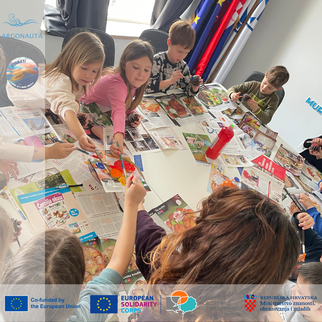 Ova radionica bila je posvećena održivom turizmu, pa smo tako raspravljali o očuvanju prirode, korištenju javnog prijevoza umjesto automobila i ljubaznosti prema lokalnom stanovništvu – to su samo neki od obrađenih aspekata. Nakon što su odglumili tipične turističke situacije, složili smo se da je veoma važno biti turist koji poštuje mjesto koje posjećuje. Nakon toga, djeca su imala priliku stvoriti svoje vlastite, individualne održive suvenire. Umjesto plastičnih magneta ili privjesaka, oslikavali smo šiške koje su ponijeli kući. Radionicu smo završili aktivnom plesnom igrom i dobro se zabavili!