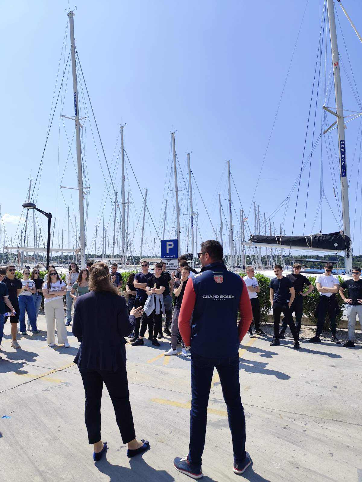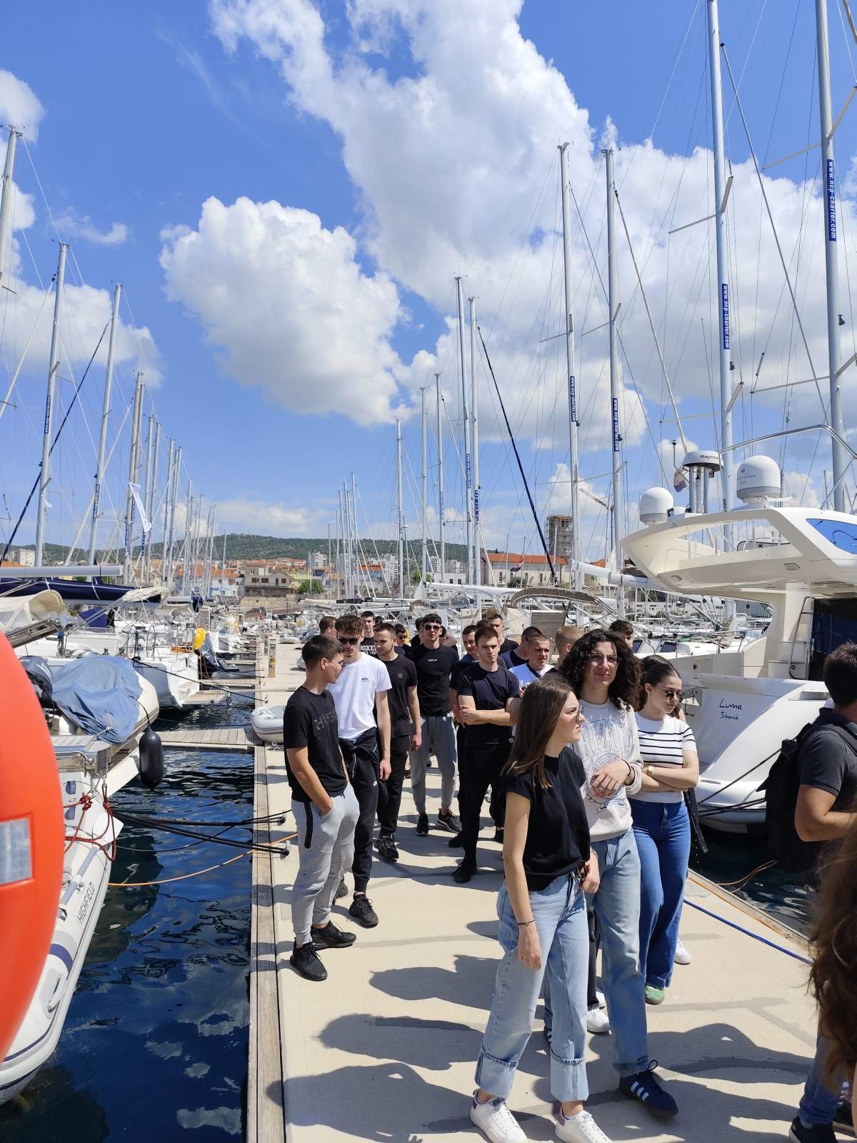 Drugi dio posjeta odvijao se u NCP Charter i Mare, jednoj od vodećih hrvatskih tvrtki za najam jahti. S flotom od preko 90 brodova i snažnim uporištem u sektoru nautičkog turizma, NCP je učenicima predstavio organizaciju rada, ekonomski značaj chartera za hrvatsko gospodarstvo, vrste brodova, sezonsko planiranje i široku lepezu zanimanja – od skipera i servisera do administracije i stručnjaka za održivost. Poseban naglasak stavljen je na inovacije u održavanju plovila, uključujući korištenje ekološki prihvatljivih premaza za trupove koji zamjenjuju tradicionalna bakrena sredstva, kao i napredne sustave za gospodarenje otpadnim vodama na brodovima (sivi i crni tankovi). Iako su učenici već bili donekle upoznati s ovim sektorom, prezentacija je dodatno proširila njihovo razumijevanje kroz fokus na održivost i ekološke prakse.