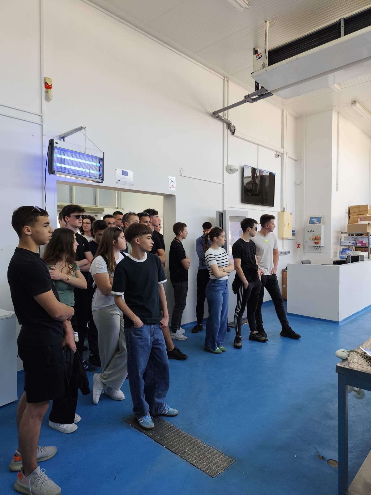 Prvi dio posjeta održan je u RZ Adria, dugogodišnjoj ribarskoj zadruzi specijaliziranoj za održivo ulovljavanje i preradu ribe iz Jadrana. Učenicima je pružen detaljan pregled cijelog proizvodnog lanca, počevši od samog procesa ribolova. Obišli su brodove zadruge, gdje su im pojašnjene metode ribolova, uloge članova posade, trajanje izlazaka na more i korištena oprema. Poseban naglasak stavljen je na upravljanje otpadom na moru, uključujući postupanje s slučajno ulovljenim otpadom – važno pitanje u kontekstu zaštite okoliša u ribarstvu. Posjet je zatim nastavljen obilaskom proizvodnog pogona, gdje su učenici vidjeli proces čišćenja i sortiranja ulova, obišli hladne komore i prostorije za soljenje, te upoznali postupke kontrole kvalitete. Ova praktična i sveobuhvatna prezentacija puta „od mora do gotovog proizvoda“ ostavila je snažan dojam na učenike, od kojih mnogi nisu bili svjesni složenosti i razine održivosti koje stoje iza proizvodnje ribe. Posjet je dao konkretan uvid u tradicionalni sektor Plavog gospodarstva koji se sve više oslanja na inovacije i dodanu vrijednost.