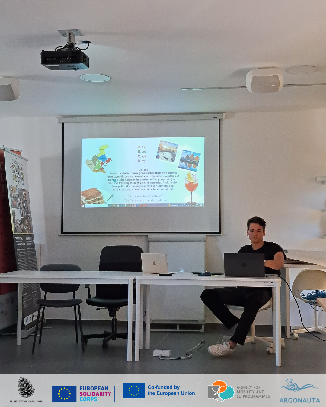 Nakon refleksije, svaki volonter predstavio je zemlju iz koje dolazi, pruživši nam priliku da steknemo uvid u kulture, tradicije i povijesti Francuske, Latvije, Portugala, Belgije i Italije. Nakon zanimljivih prezentacija, nekoliko zabavnih izazova i kvizova, uživali smo u kušanju tradicionalnih jela iz njihovih zemalja, što je svima bilo posebno drago!