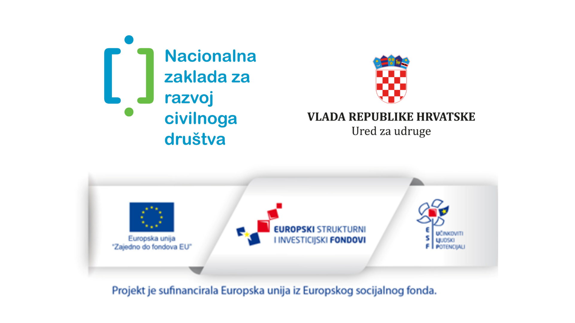 Donatori: Bespovratna sredstva osigurana iz Državnog proračuna Republike Hrvatske (15%) i iz Europskog socijalnog fonda (85%). PROVEDBENA TIJELA: Razina 1. Ured za udruge Vlade RH Razina 2. Nacionalna zaklada za razvoj civilnog društva