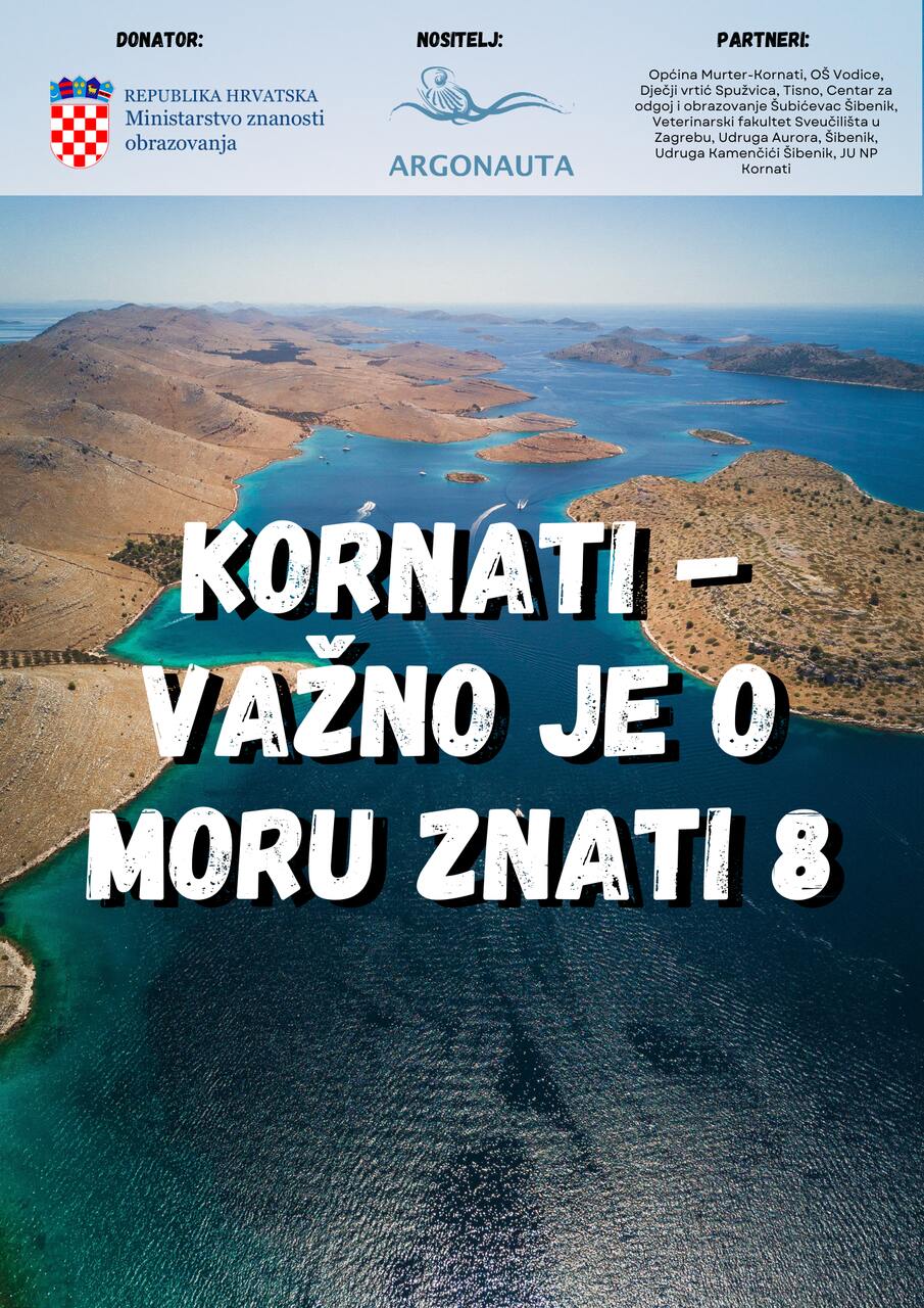 PARTNERS: Općina Murter-Kornati, OŠ Vodice, Dječji vrtić Spužvica, Tisno, Centar za odgoj i obrazovanje Šubićevac Šibenik, Veterinarski fakultet Sveučilišta u Zagrebu, Udruga Aurora, Šibenik, Udruga Kamenčići Šibenik, JU NP Kornati.