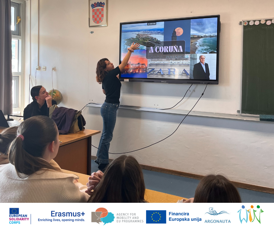 Our dear volunteer from Spain, Ana, gave a presentation on Friday, the 17th, about her region Galicia. The students in the language group in Murter School had the opportunity to enjoy and learn some fun facts about the Spanish region, such as the similarities between Galician and Croatian letters and the football match between Hajduk Split and her city’s team Deportivo de Coruña. Ana also prepared some interactive language games to teach the students a few Galician words and phrases.