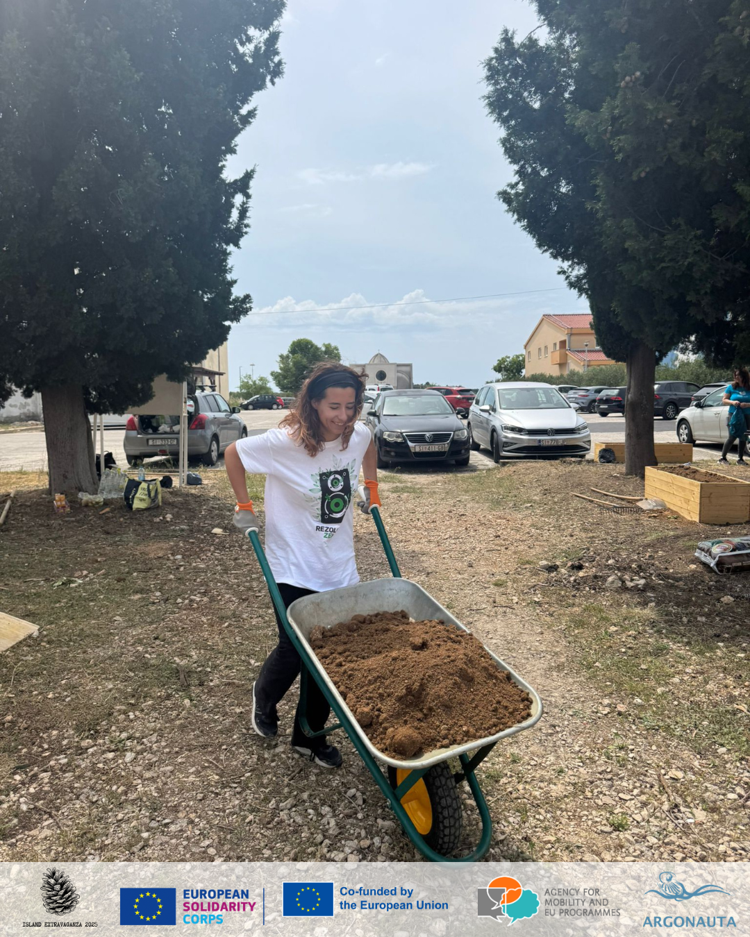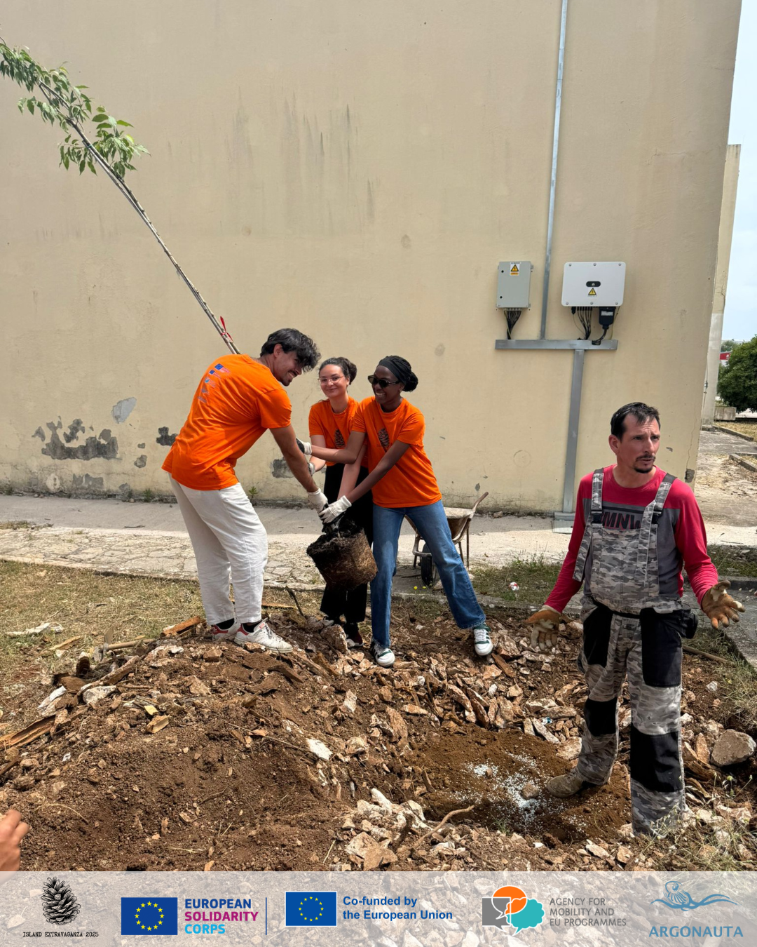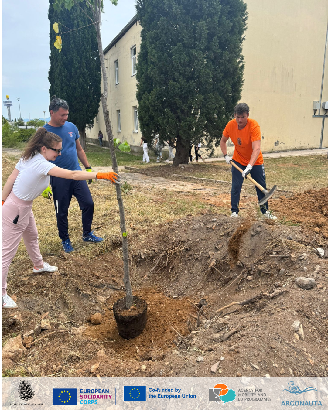 Yesterday, the volunteering team of the project “Island Extravaganza 2025” and Argonauta members participated in a planting action of our partner project “Zavrtimo krug promjena IV”. In the garden of the Catholic School in Šibenik, we planted three beautiful new trees, and other plants were planted by the kids of the school. It was inspiring to see their enthusiasm and fun while gardening and painting the pots. The day was filled with positive energy, teamwork, and a shared commitment to creating a greener future. We hope these new additions will thrive and symbolize our collaboration and dedication to sustainable change.
