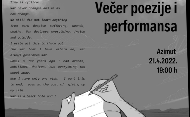 Pročitaj više →Udruga Argonauta u suradnji s klubom Azimut organizira „Večer poezije i performansa“. Događaj će se održati 21. travnja 2022. u klubu Azimut s početkom...