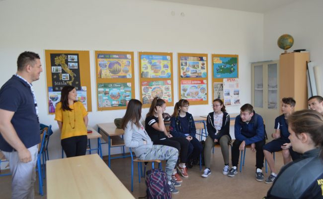 Pročitaj više →Prvi sat nastave ovaj četvrtak je tišnjanskim osmašima u goste došla naša volonterka Serena iz Italije. Na satu talijanskog Serena je s učenicima razgovarala...