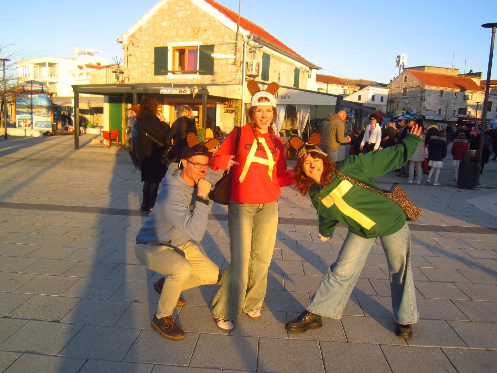 U svakom slučaju, mjesec je počeo s Murterskim karnevalom, što je bilo jako smiješno jer dolazim iz njemačkog grada poznatog po velikim karnevalskim proslavama. Sigurna sam da smo u jednoj noći vidjeli više ljudskih lica nego u svim zimskim mjesecima zajedno, što nam je bilo jako zabavno. Jutro nakon, živo se sjećam da sam se probudila s Chipmunk šminkom još na licu, čujući Lucijin glas na Aninom telefonu, obavještavajući nas da ćemo se pridružiti trening tečaju “od izazova do promjene” koji su Juan i ona pripremali posljednjih tjedana. Tako smo, dva dana kasnije, spakirale stvari i krenule za Knin.